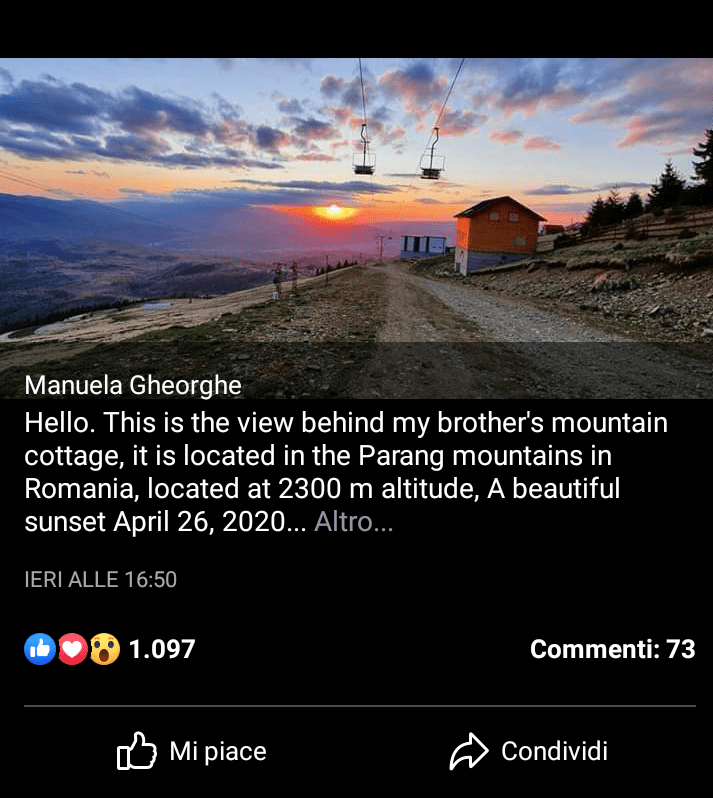 View from my window è il nome di un gruppo nato su Facebook il 22 marzo 2020, che in poco più di un mese ha registrato 2 milioni e 200 mila iscritti. In questo breve tempo i post sono stati circa 926 mila. Ho ricevuto l’invito da una carissima amica, Bianca Monti , ma ora hanno addirittura fermato le iscrizioni, non accettano più membri, però è possibile guardare i post che persone di tutto il mondo inviano agli amministratori, che dopo averli analizzati li pubblicano.