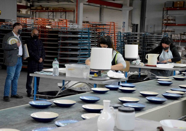 Piatto in ceramica realizzato da una cooperativa dipendenti che hanno rilevato azienda di Città di Castello. Crisi è ripartenza per gli operai di Ceramiche Noi.
